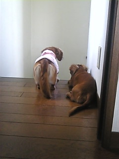 3わんは弟子のようにはなちゃんの行動に見入ってついて廻ってた。