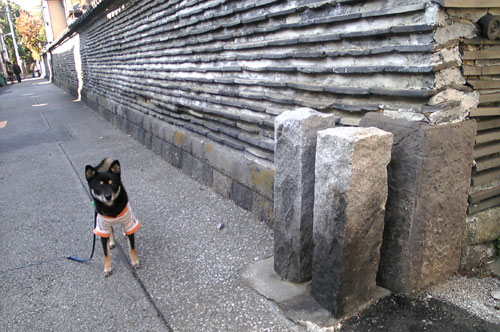 観音寺瓦塀とやっぱ日本犬がよく似合う