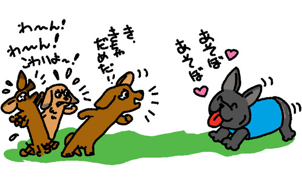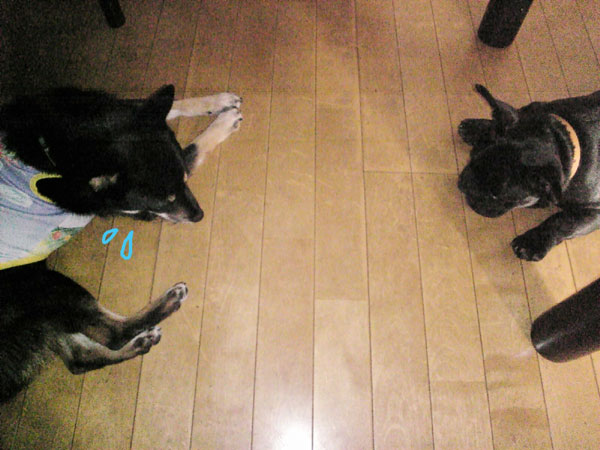 で、5ヶ月のフレブルのモモ君との関係がまだ微妙。